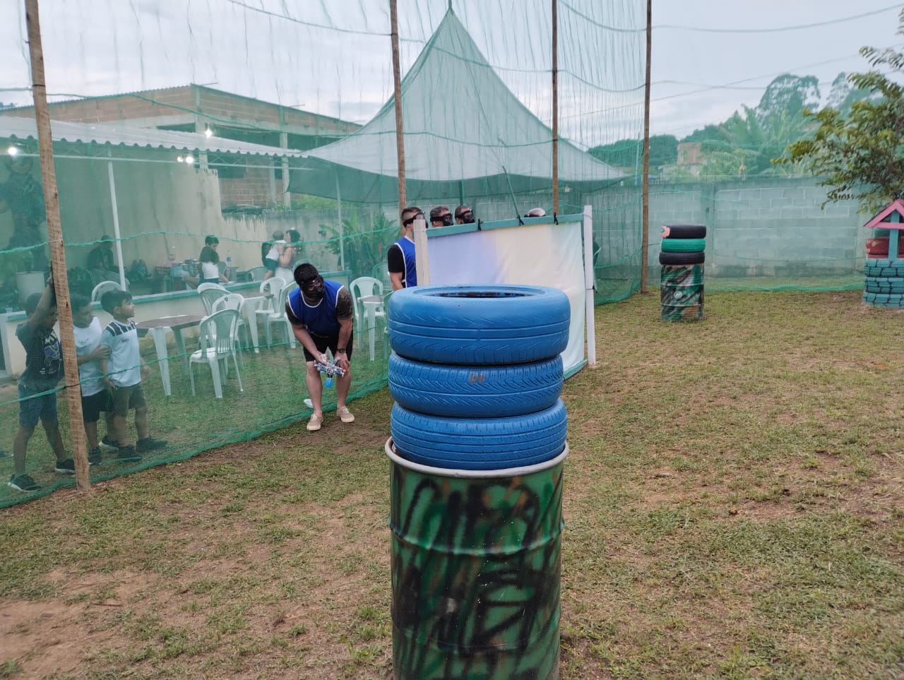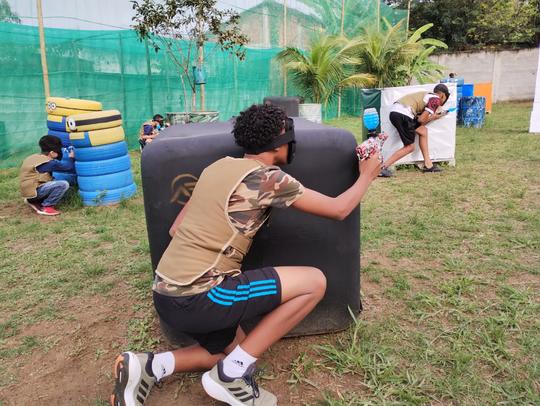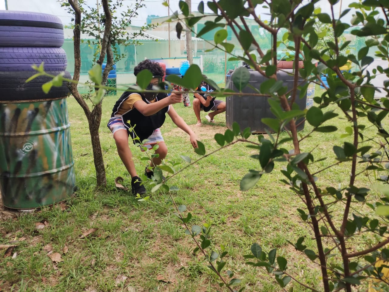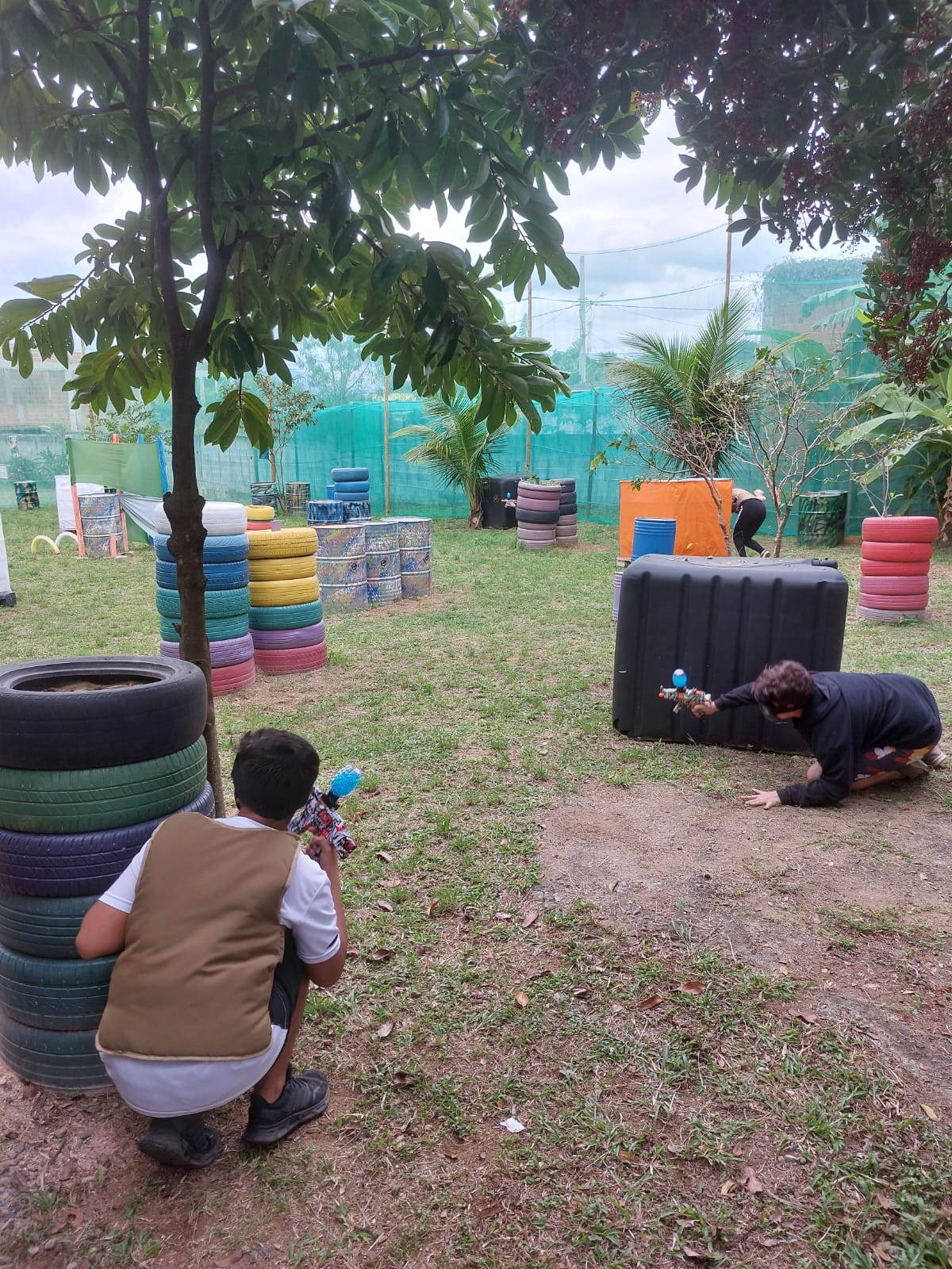 Nele, os jogadores podem participar de jogos simulados de combate usando réplicas de armas de fogo que disparam projéteis plásticos não letais. É um ambiente controlado e seguro para essa atividade.