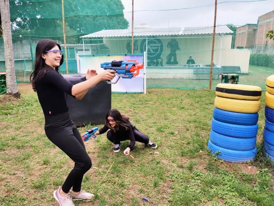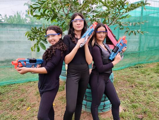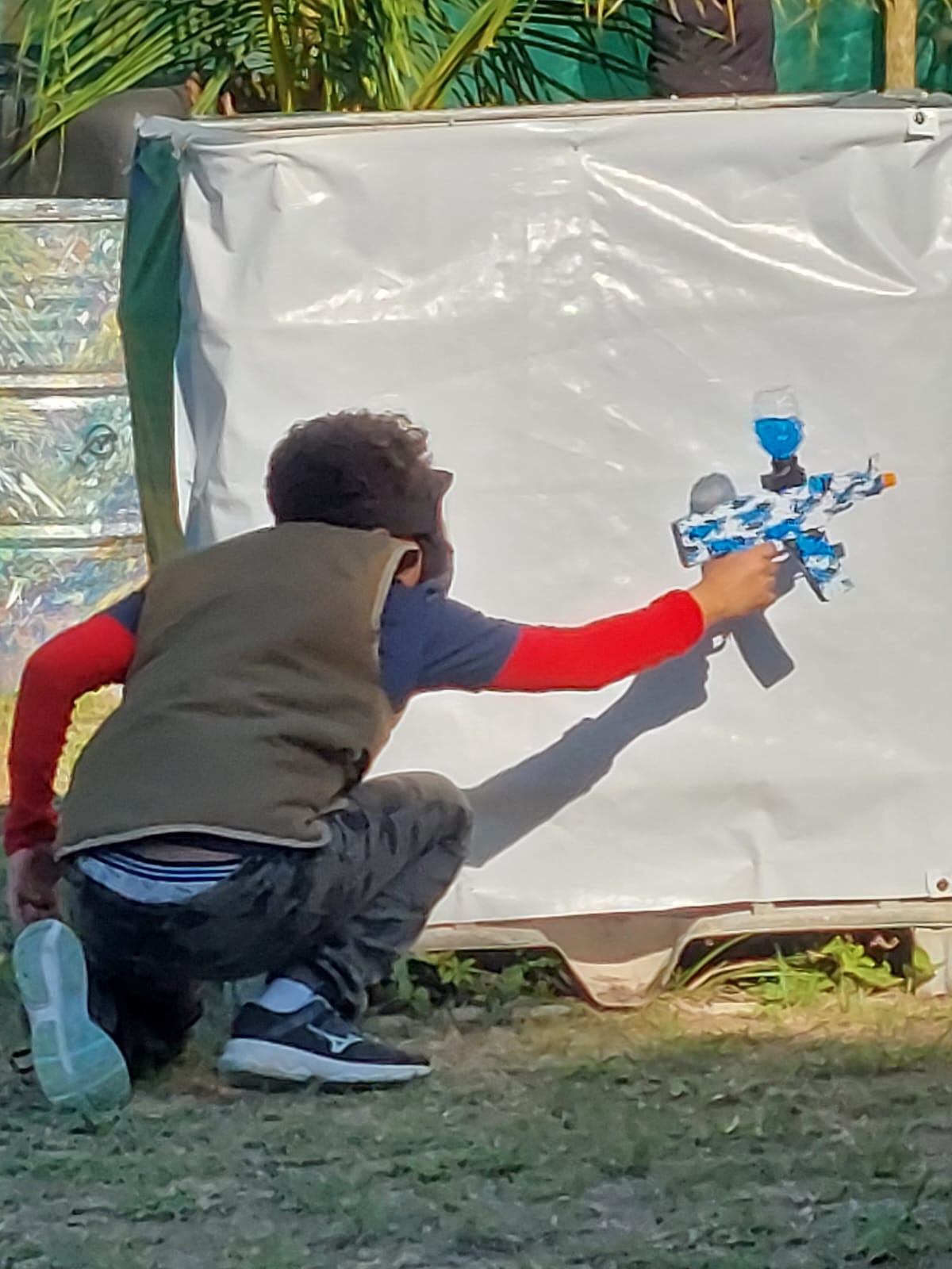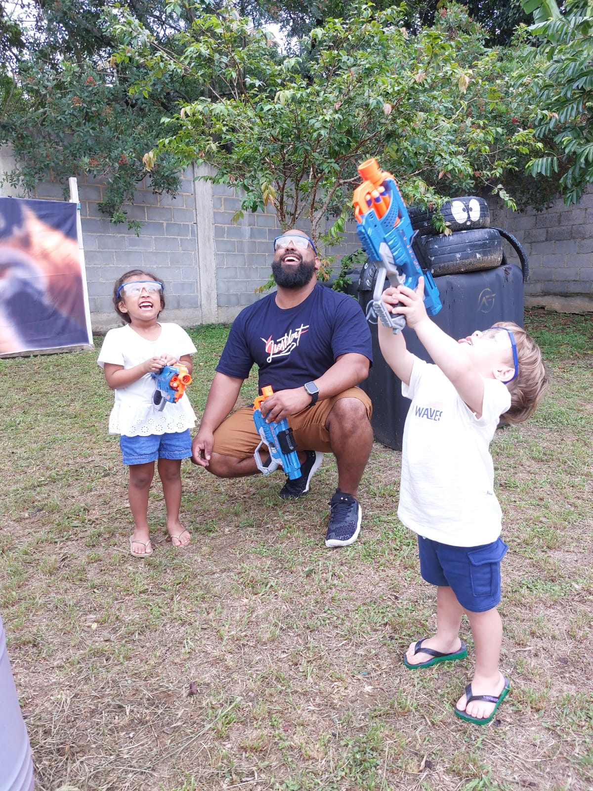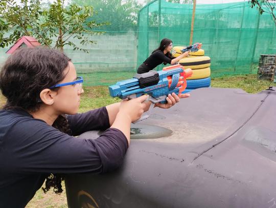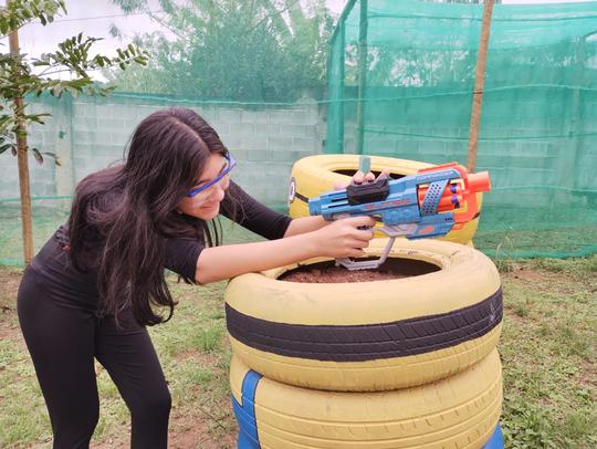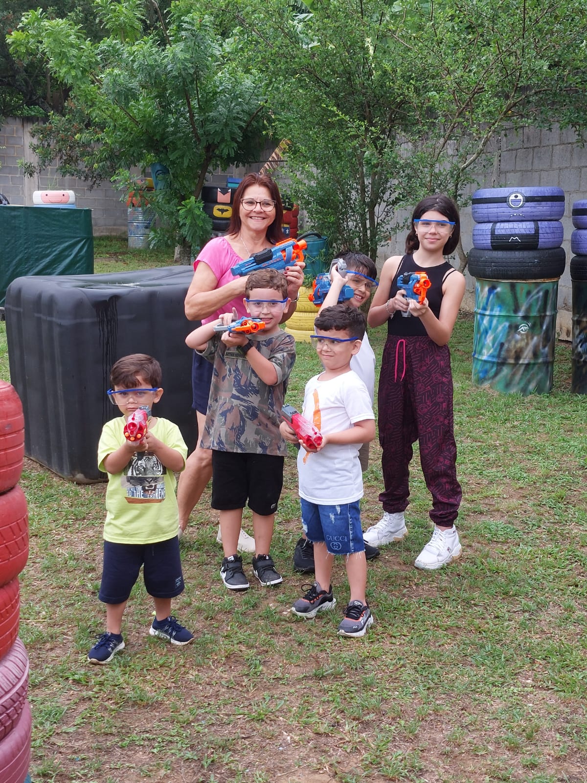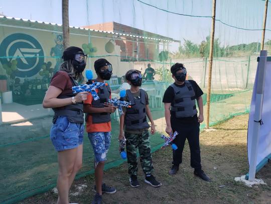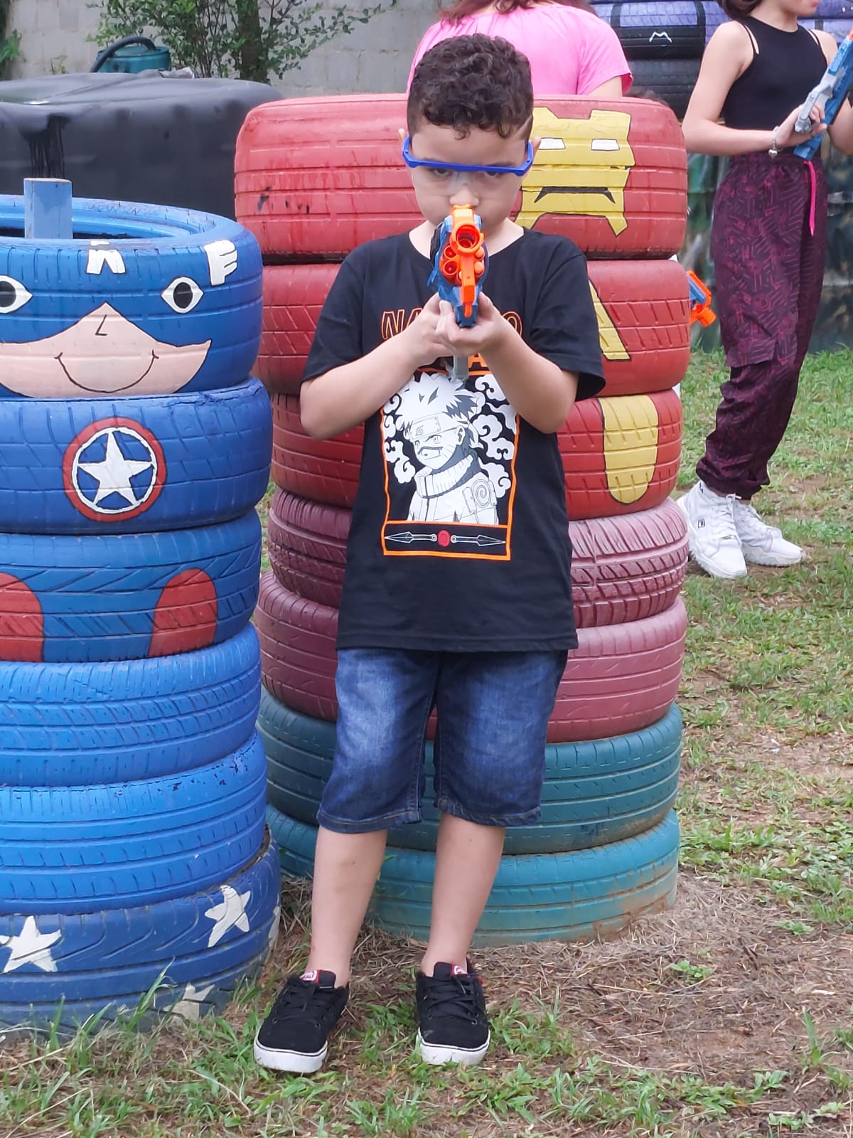 É um tipo de jogo em que os participantes usam armas de brinquedo da marca NERF para simular uma batalha, disparando dardos de espuma uns contra os outros. É uma forma divertida e segura de brincar.