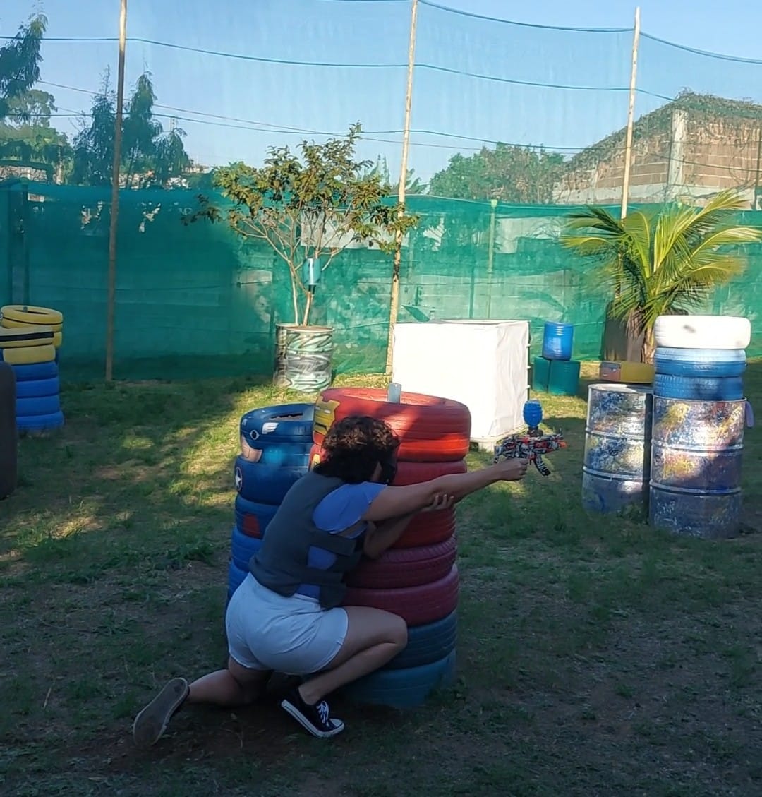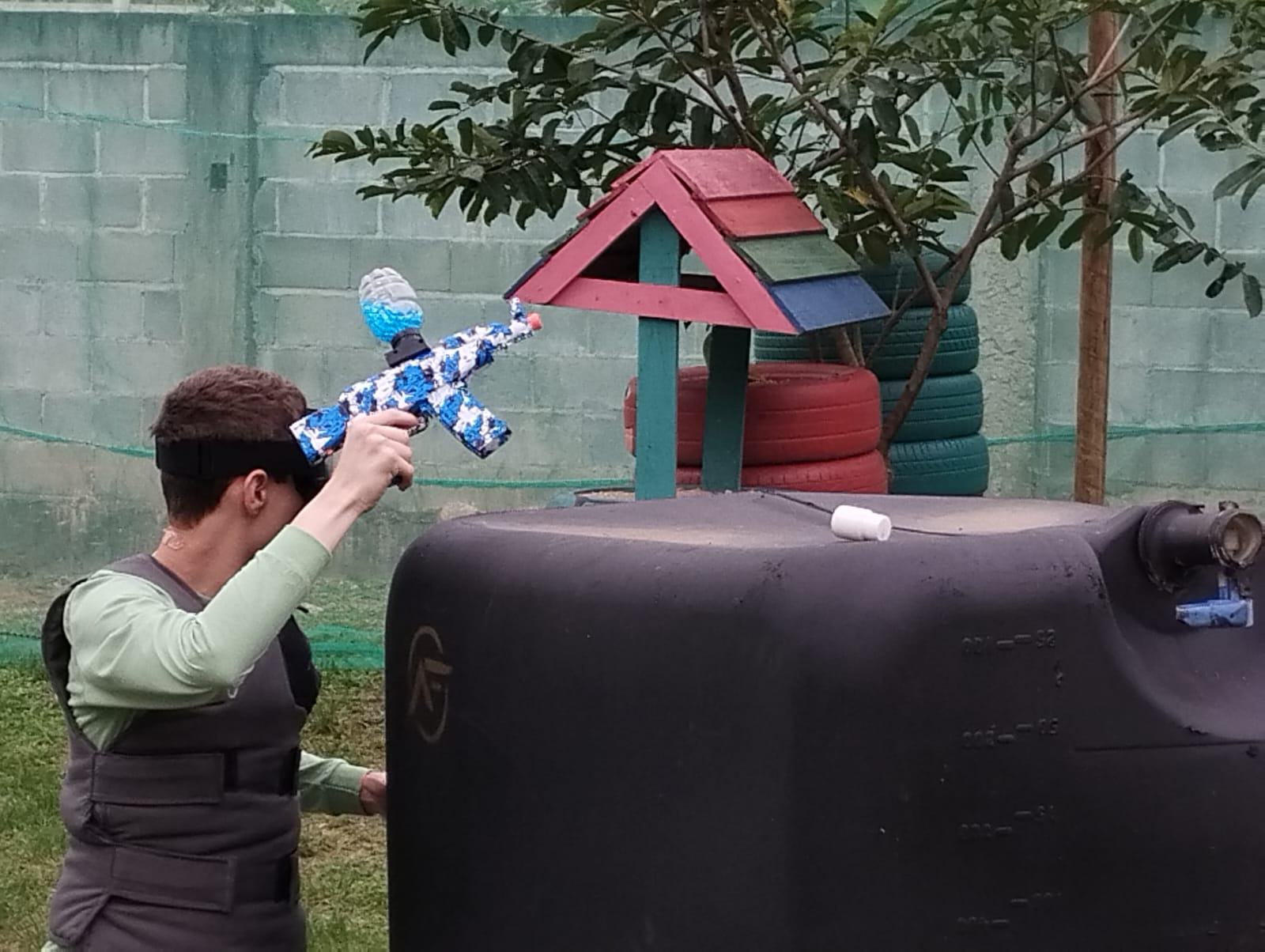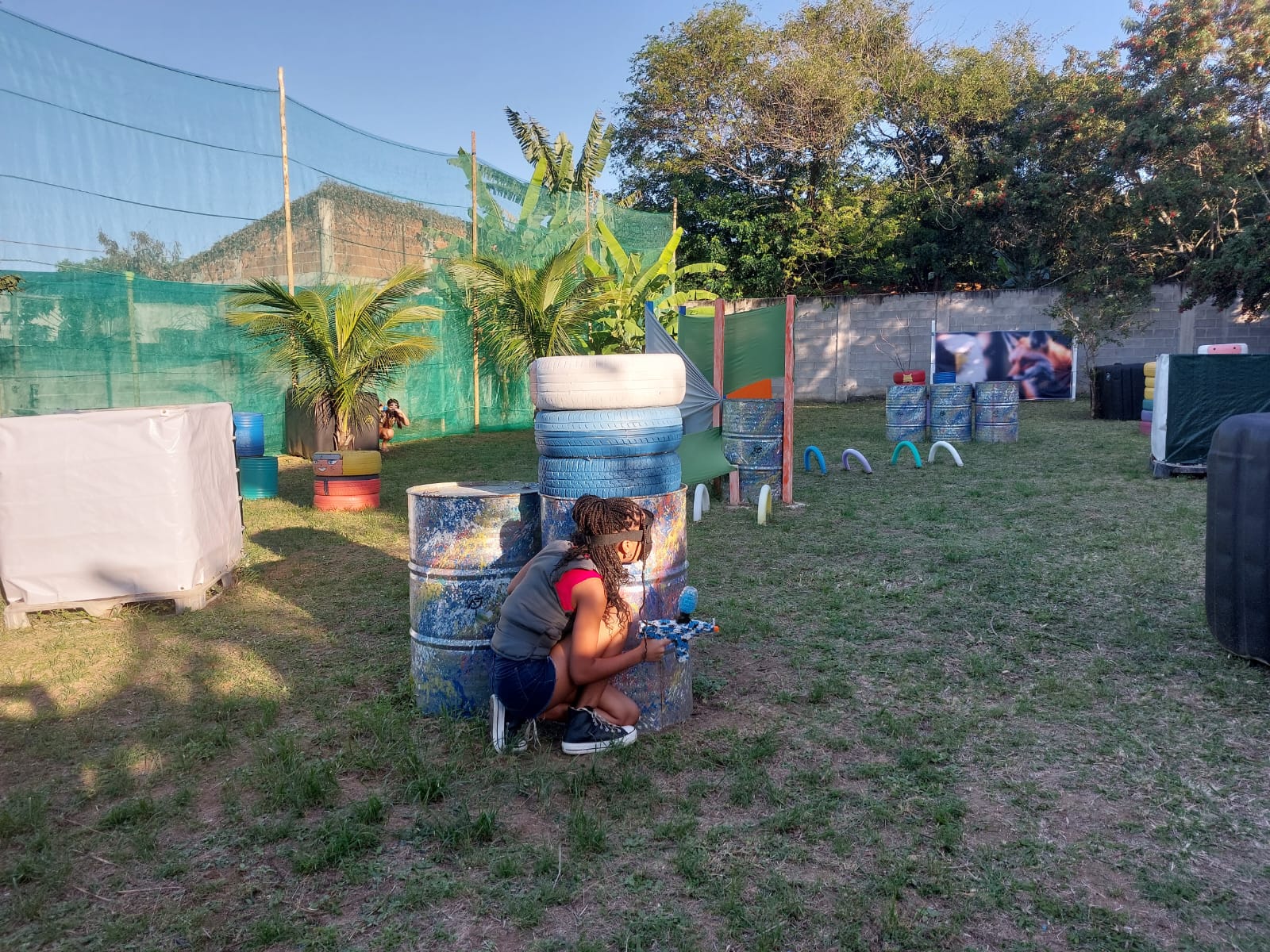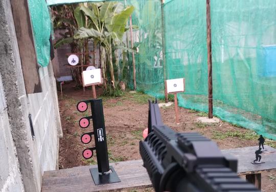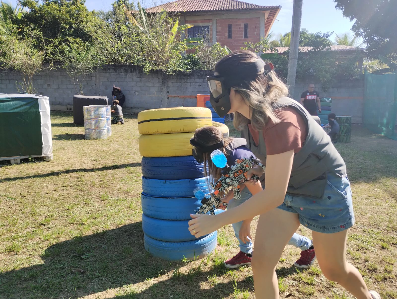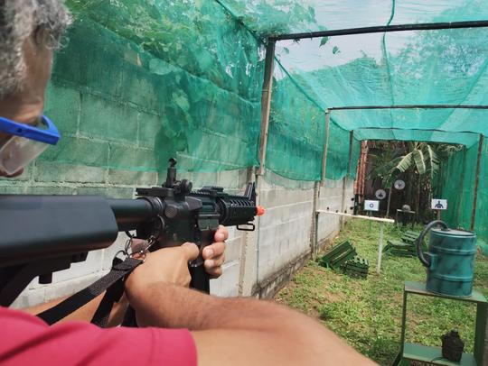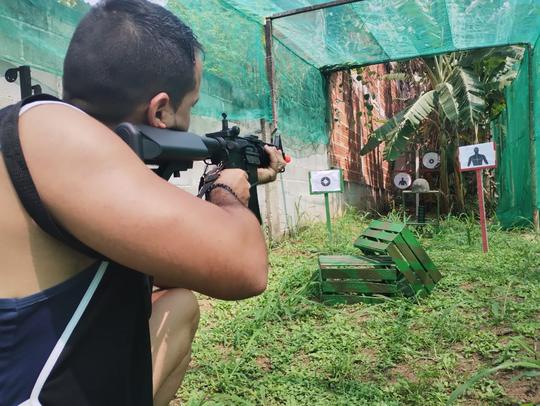 Nele, os jogadores podem participar de jogos simulados de combate usando réplicas de armas de fogo que disparam projéteis plásticos não letais. É um ambiente controlado e seguro para essa atividade.