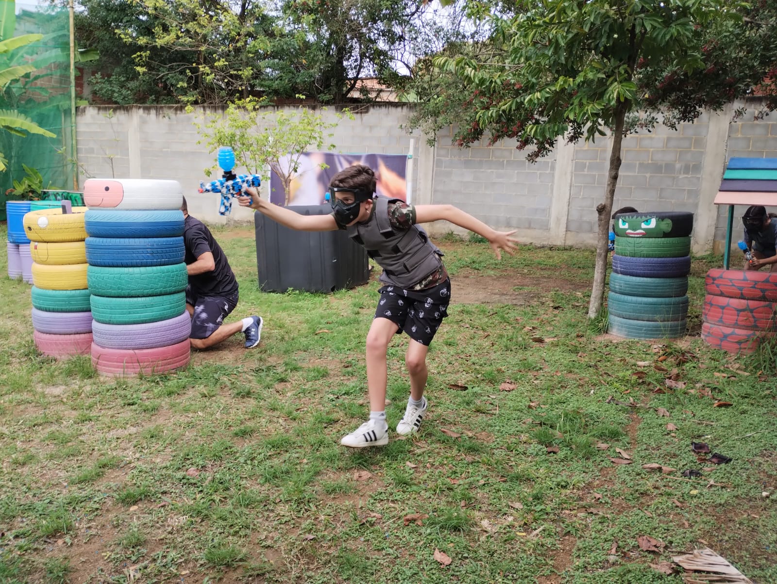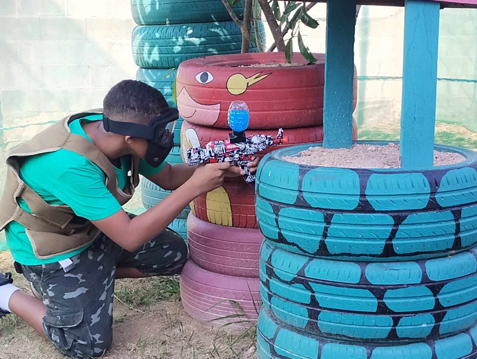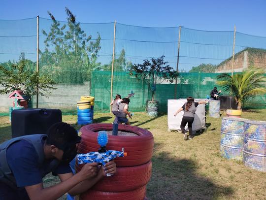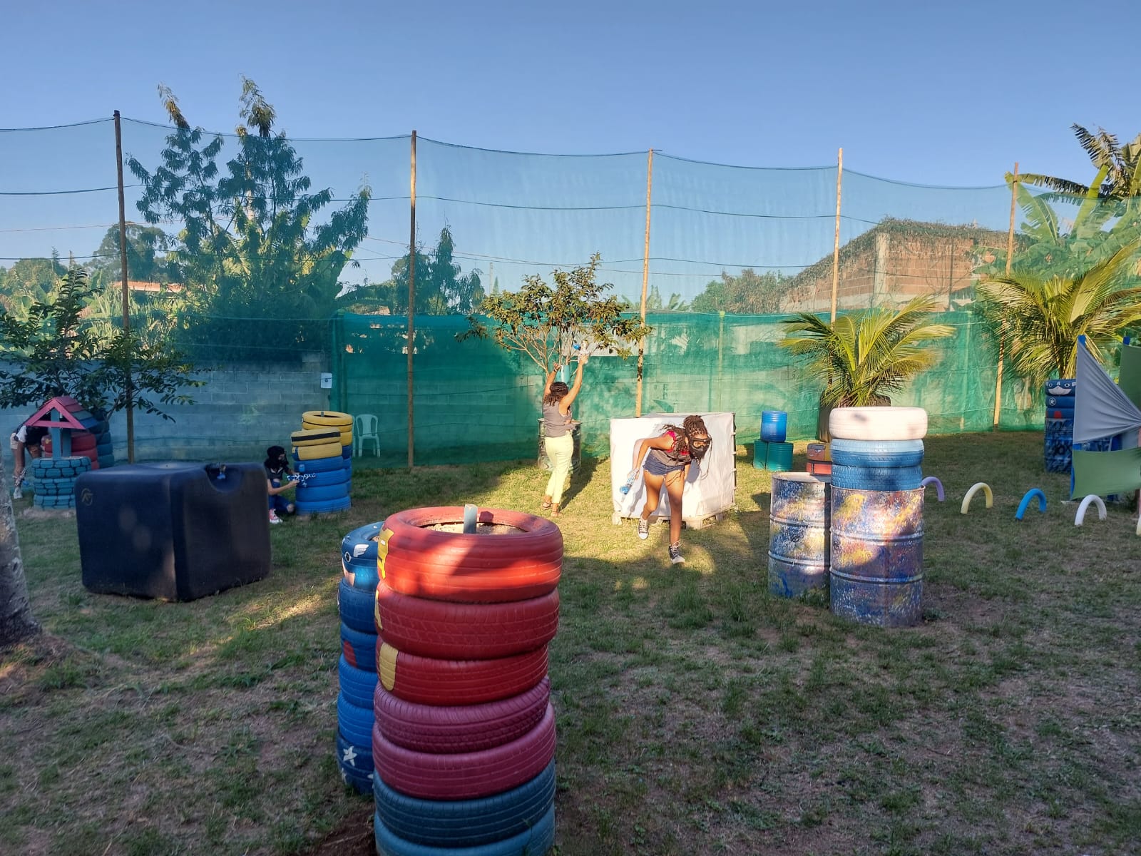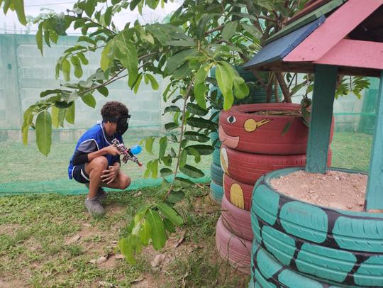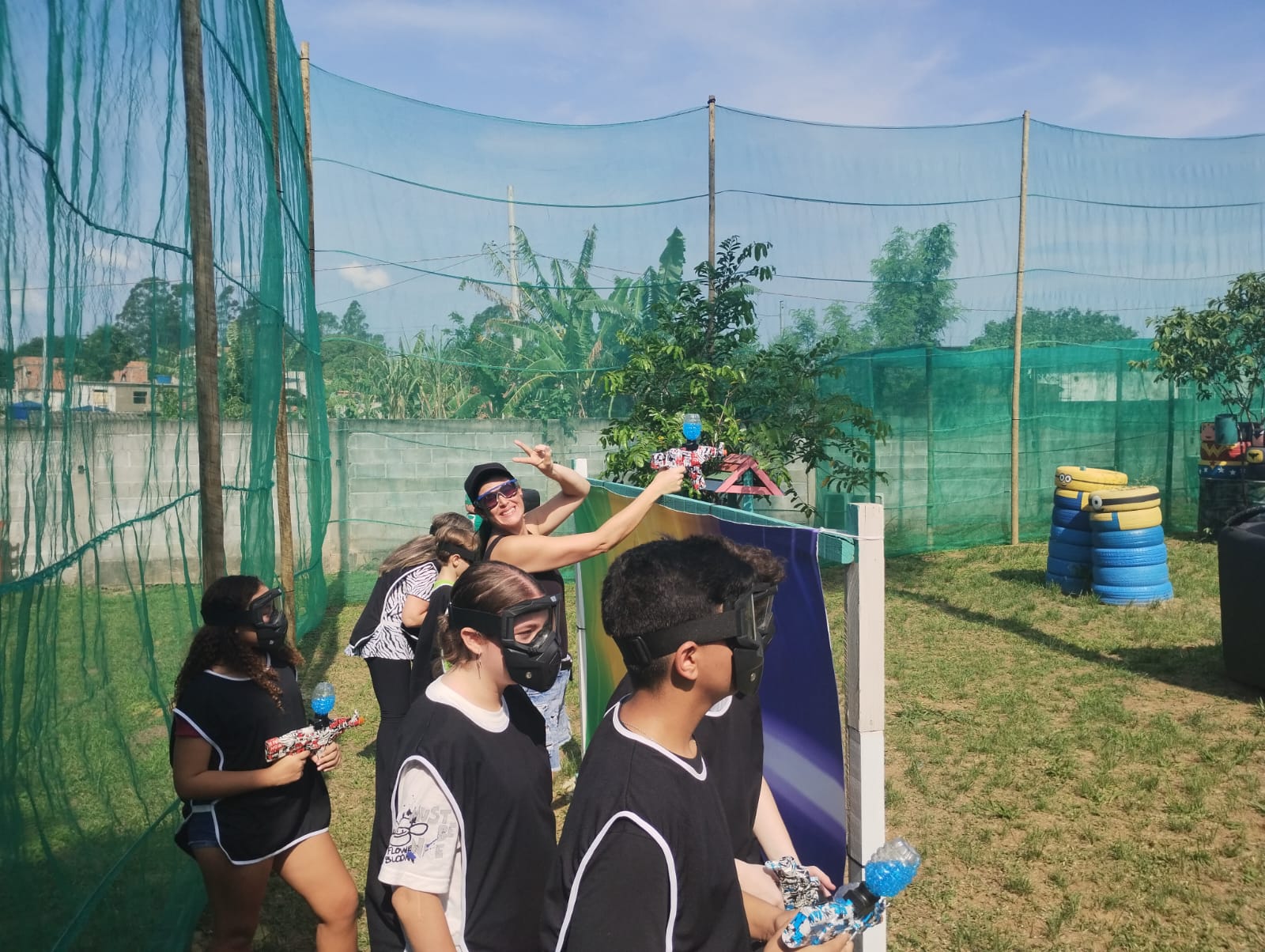 Nele, os jogadores podem participar de jogos simulados de combate usando réplicas de armas de fogo que disparam projéteis plásticos não letais. É um ambiente controlado e seguro para essa atividade.