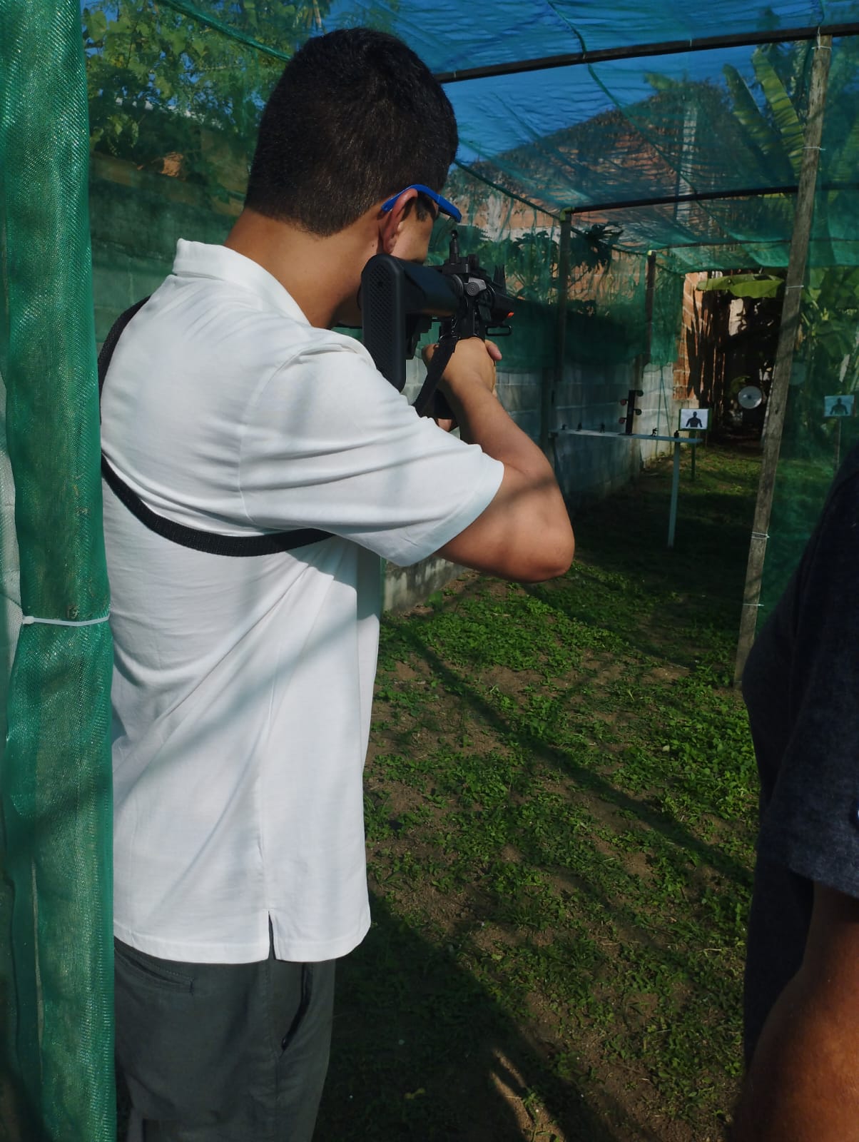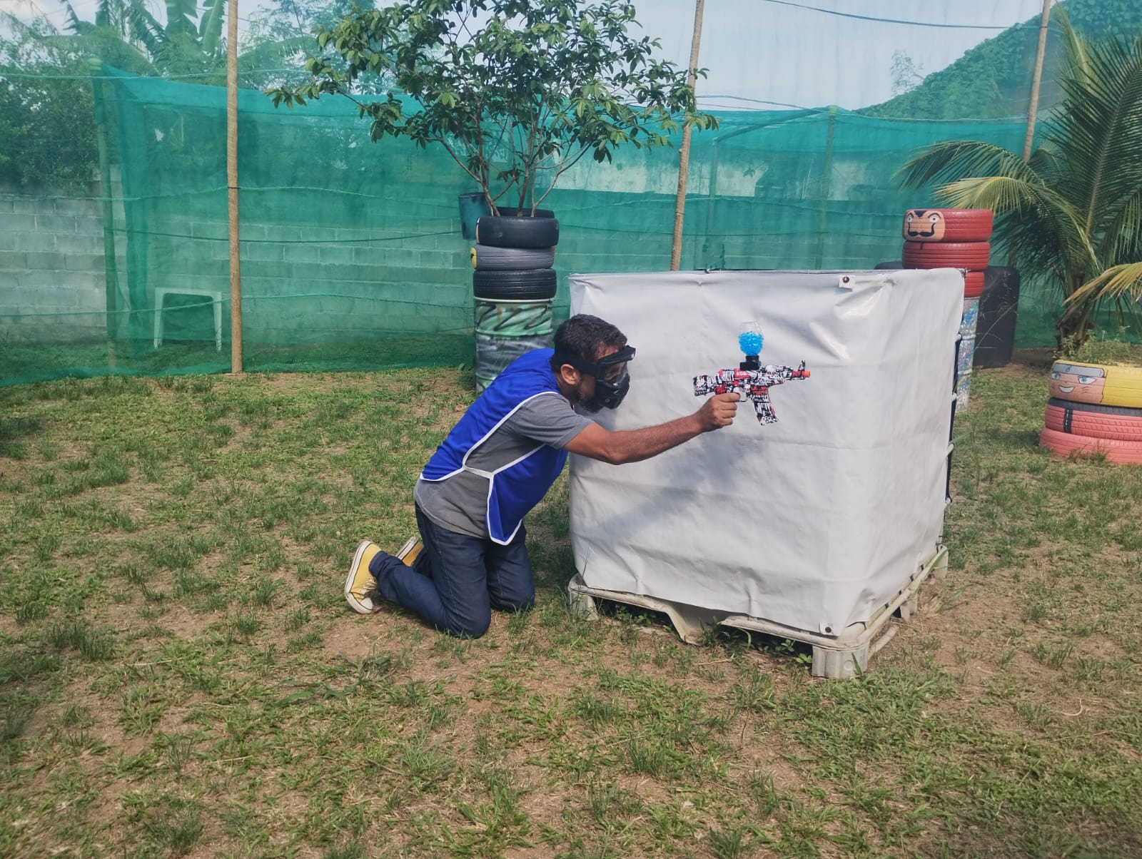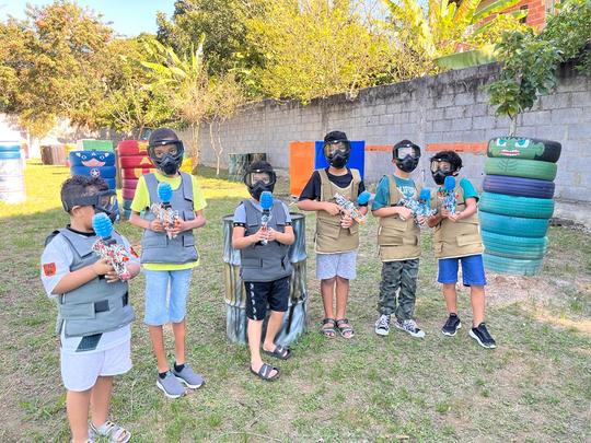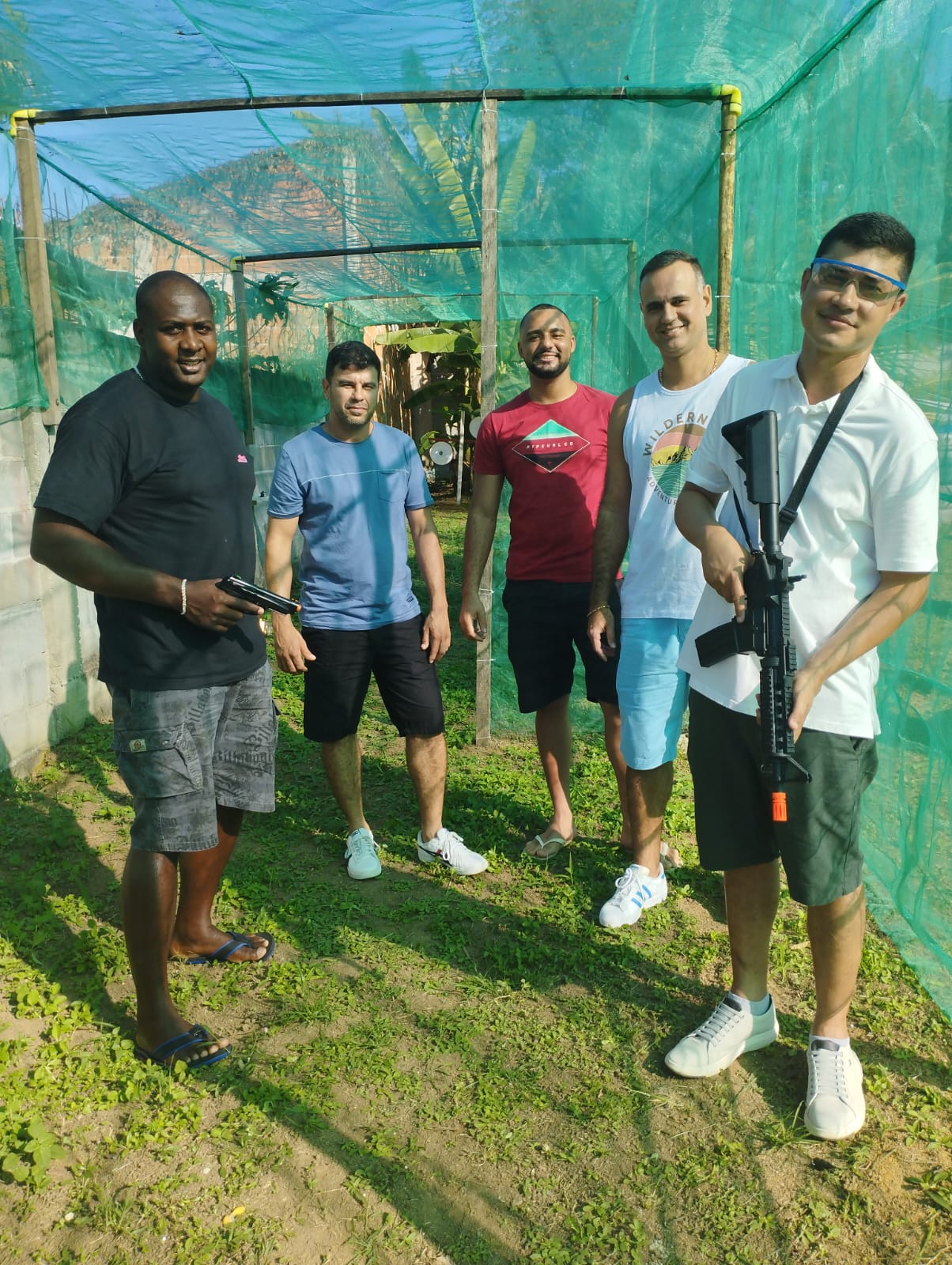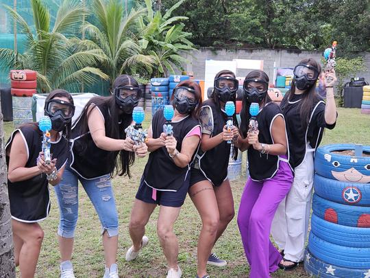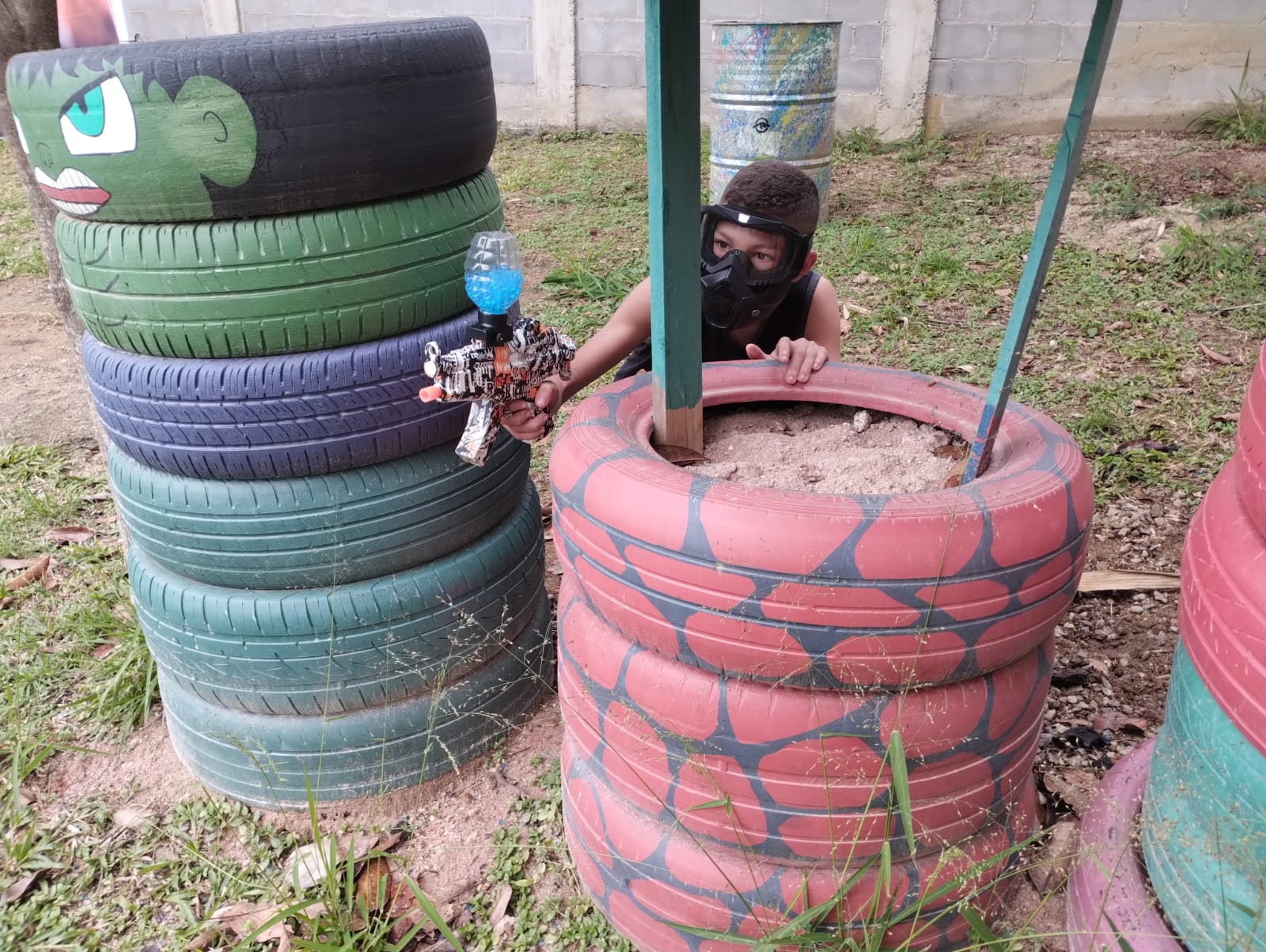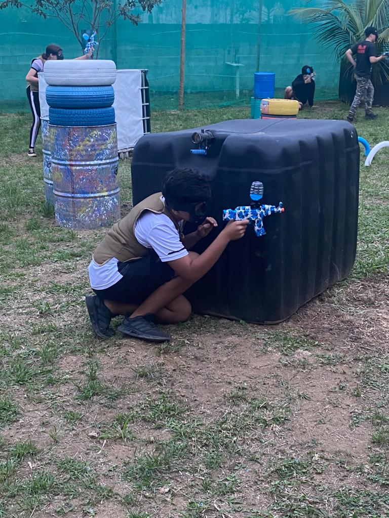 Nele, os jogadores podem participar de jogos simulados de combate usando réplicas de armas de fogo que disparam projéteis plásticos não letais. É um ambiente controlado e seguro para essa atividade.