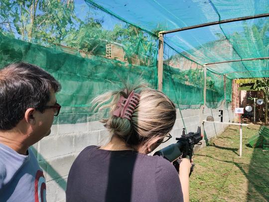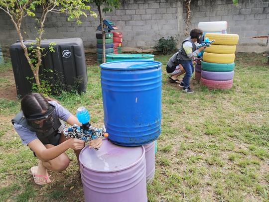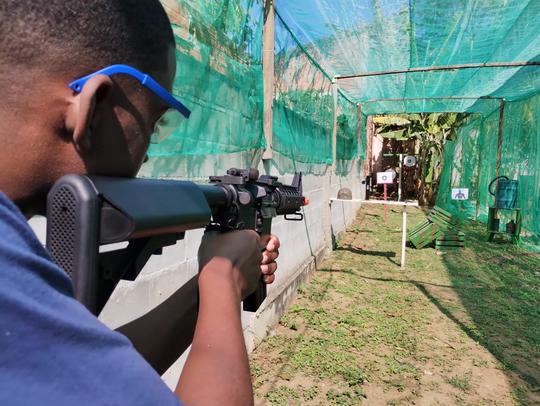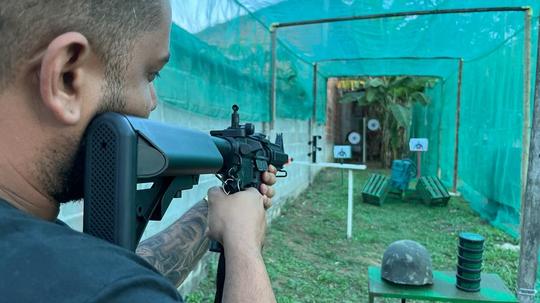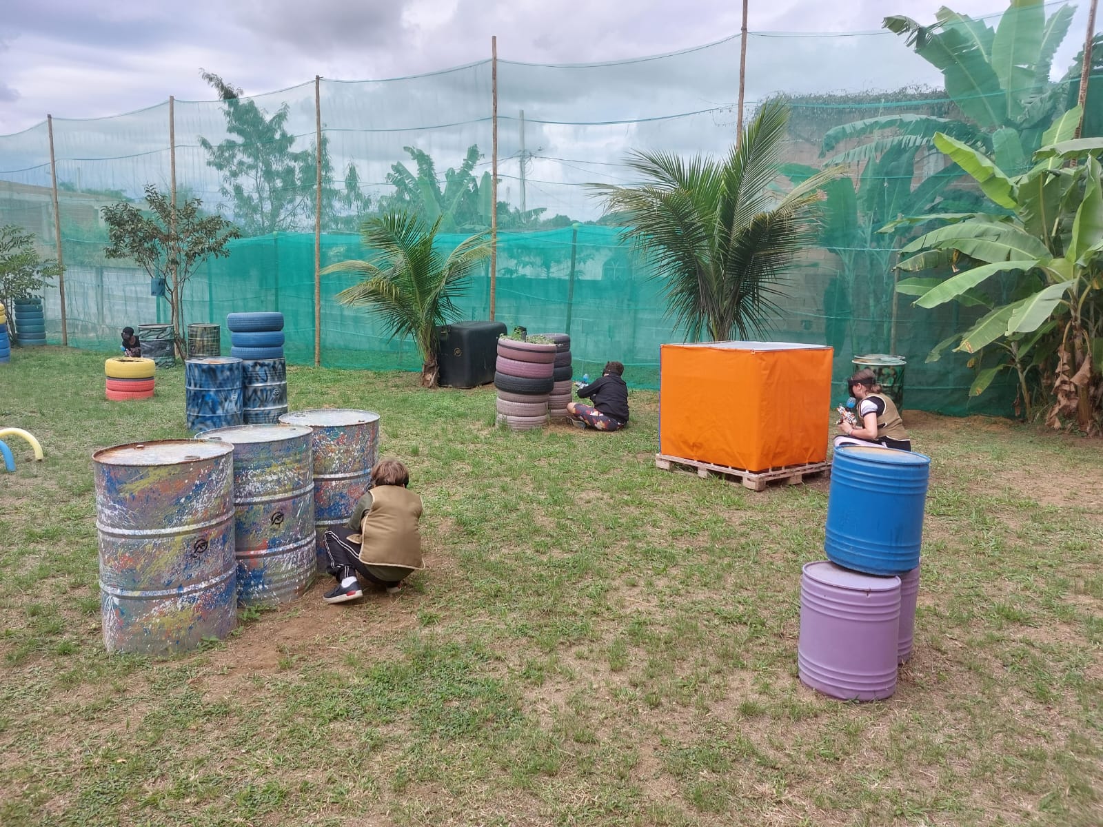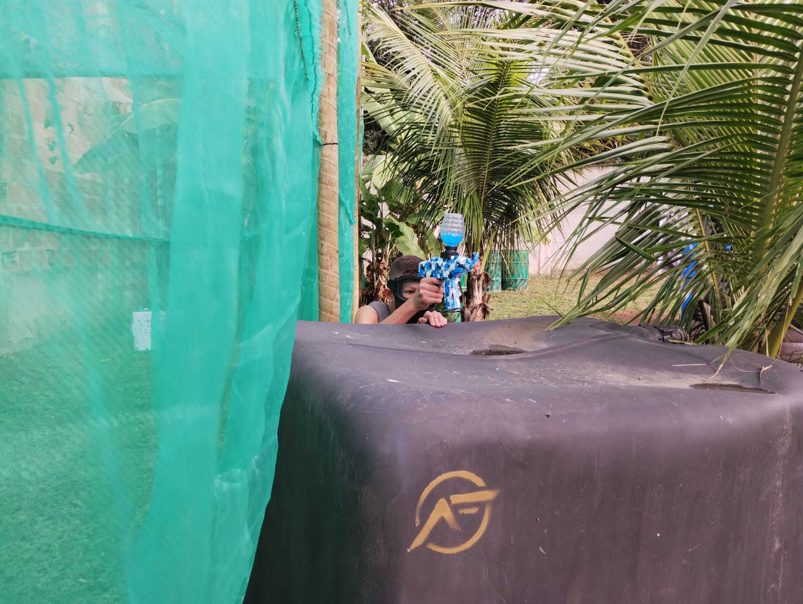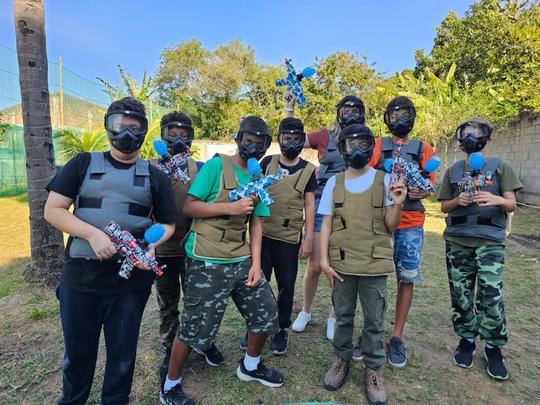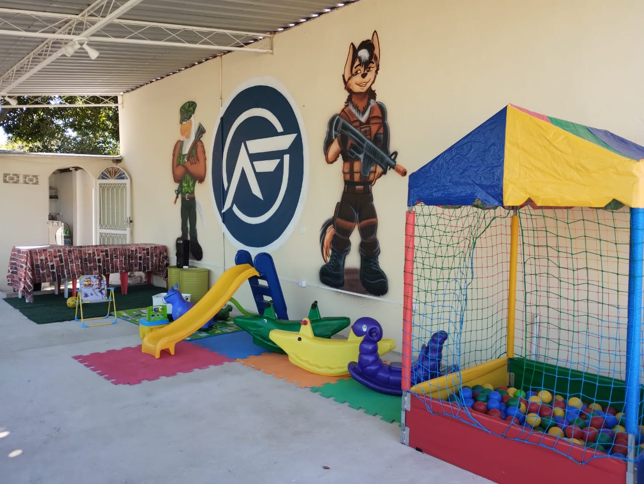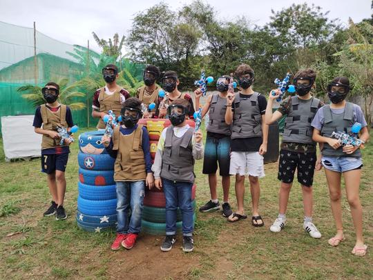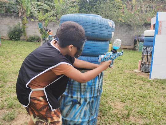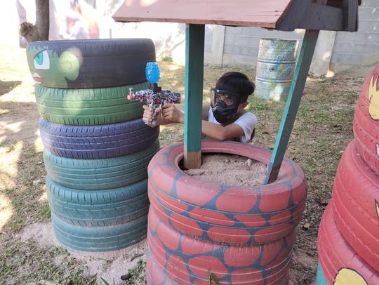 Nele, os jogadores podem participar de jogos simulados de combate usando réplicas de armas de fogo que disparam projéteis plásticos não letais. É um ambiente controlado e seguro para essa atividade.